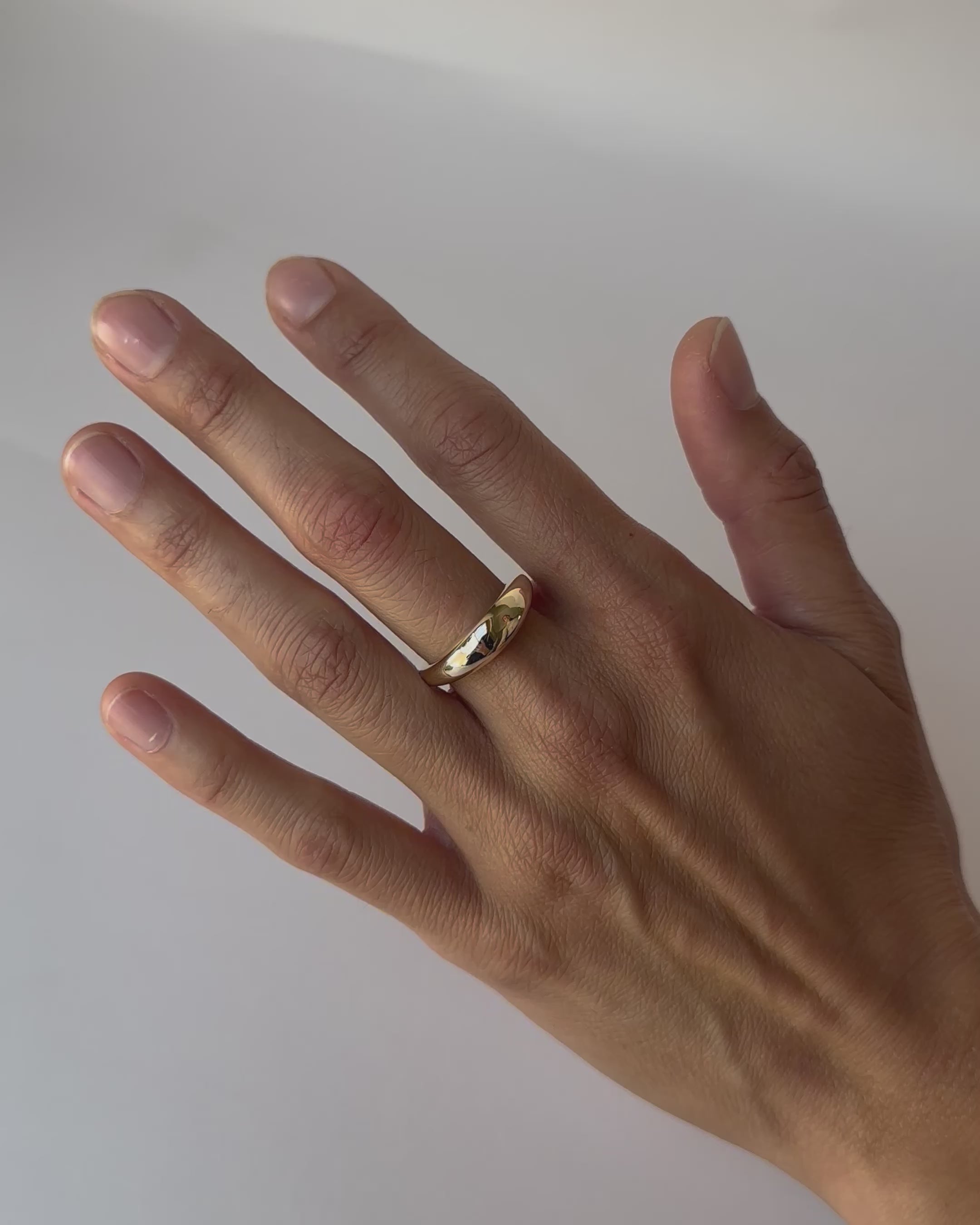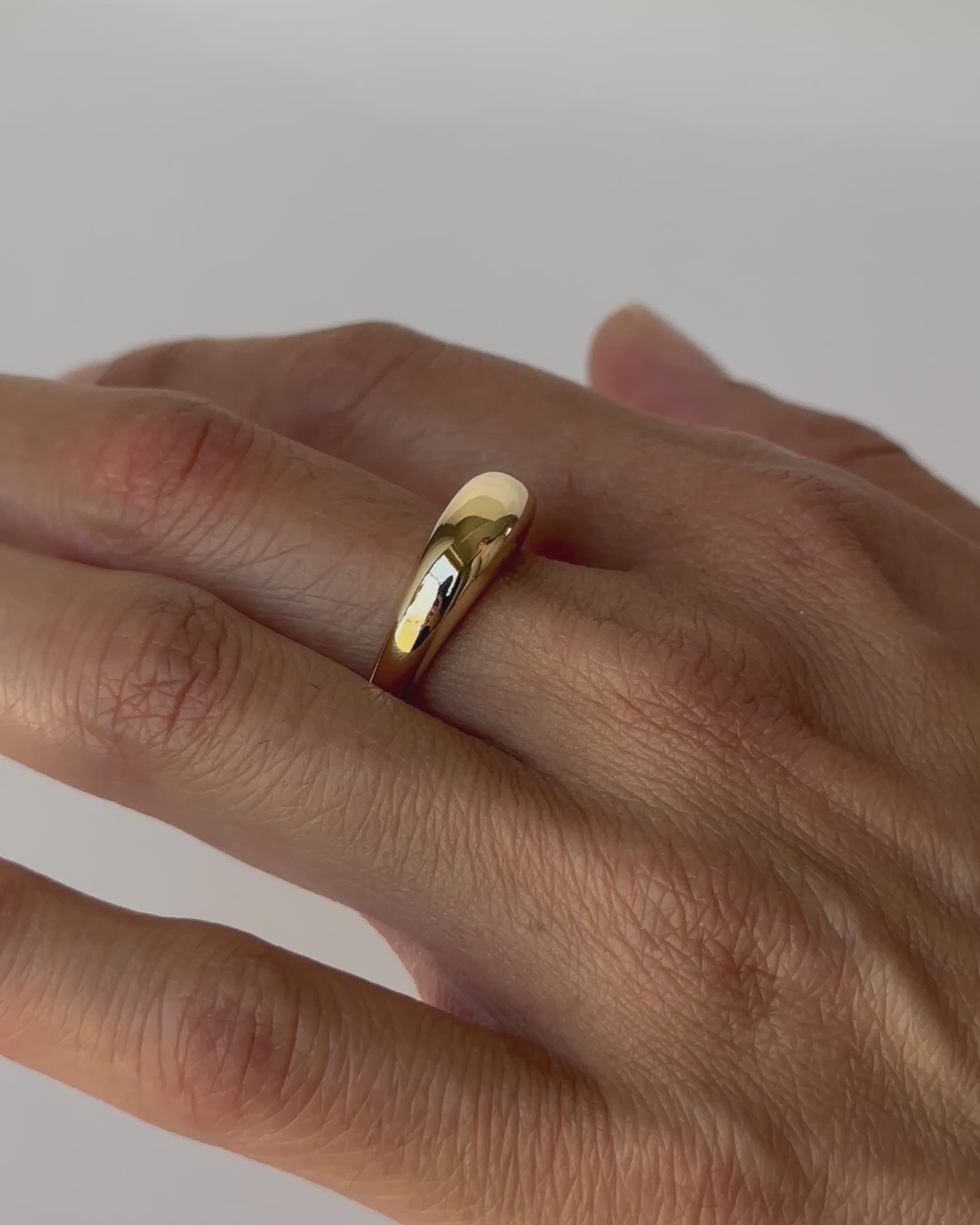 Minimal form, made for every day. A dome, blob shaped band that is slowly formed from wax before casting in solid 9ct yellow gold, finished with a high shine.