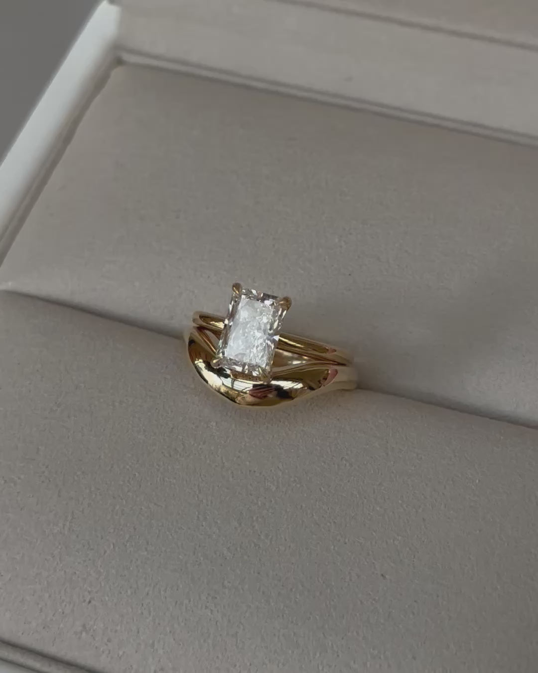 The Elin wedding band is made to sit alongside most engagement ring styles. Designed with a rounded, dome shaped profile and curved front making it the perfect fit with a traditional solitaire style setting.